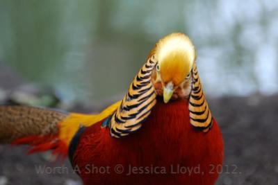 When I took this shot, I was terrified! This is a Chinese crested pheasant. This is a bird who did not like me. He wanted me gone – maybe, he wanted me dead. Although logically I knew this guy couldn’t hurt me. A 6 – 8 pound creature with no teeth or claws; he basically just ran around the ground going after my toes, but none-the-less, I was afraid of him. I snapped his photo and quickly moved on.