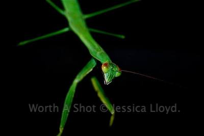 This is a praying mantis, and a very angry one at that. This guy was fierce. He displayed more courage than an army of giants. He locked in, tracking me – staring dead into my eyes and never blinking, (never mind that he doesn’t have eyelids – the constant gaze was creepy!) Standing on his hind legs, he danced his upper body back and forth – arms extended out to kill me. Though a few ounces at best, and a bite I’d barely notice, his sheer confidence and conviction was unnerving. I was scared: He seemed to know something I didn’t.